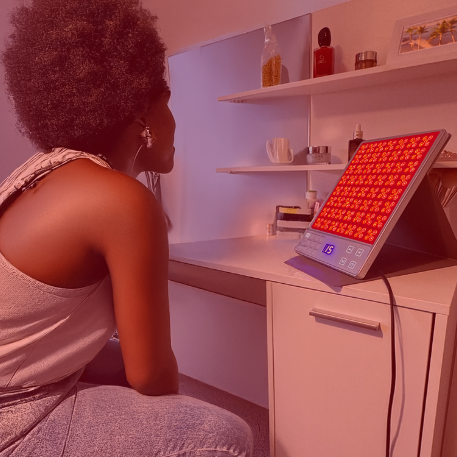 Collagen Production: Red light stimulates collagen production, improving skin elasticity and reducing the appearance of fine lines and wrinkles.